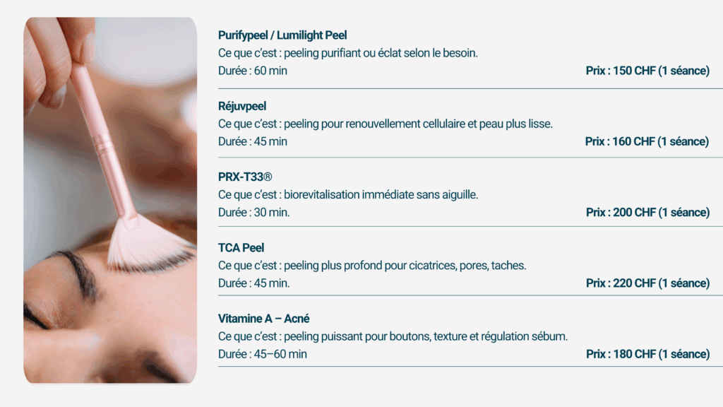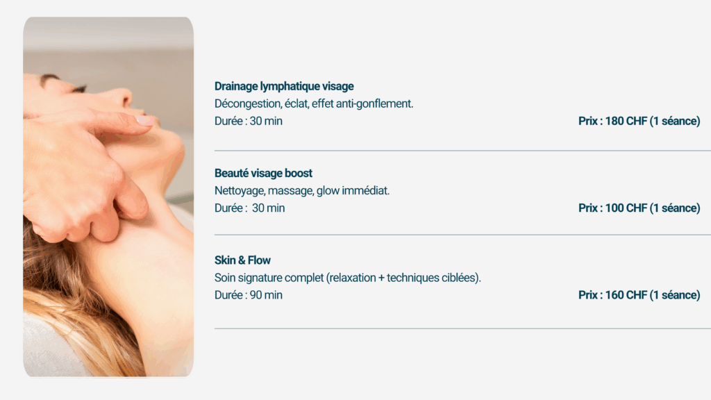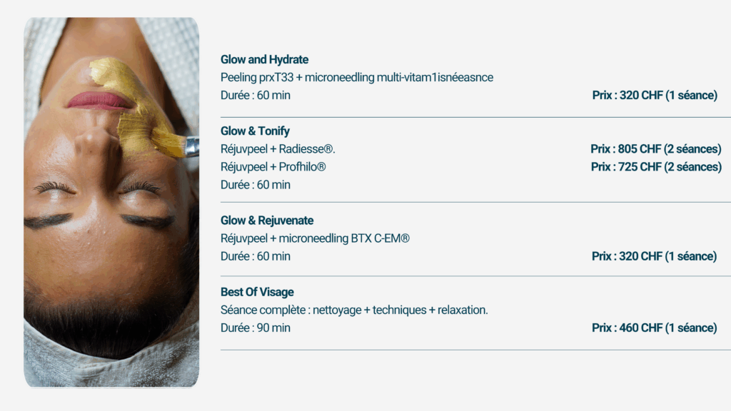 Offrez à votre peau toute l’attention qu’elle mérite grâce à une gamme complète de soins esthétiques alliant efficacité, douceur et résultats visibles. Que ce soit pour raviver l’éclat du teint, atténuer les imperfections, lisser les traits ou purifier en profondeur, chaque soin est conçu pour répondre aux besoins spécifiques de votre peau.